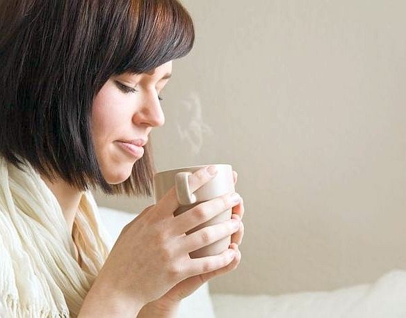На фото можно увидеть, что первая помощь при першении в горле – это травяной чай.